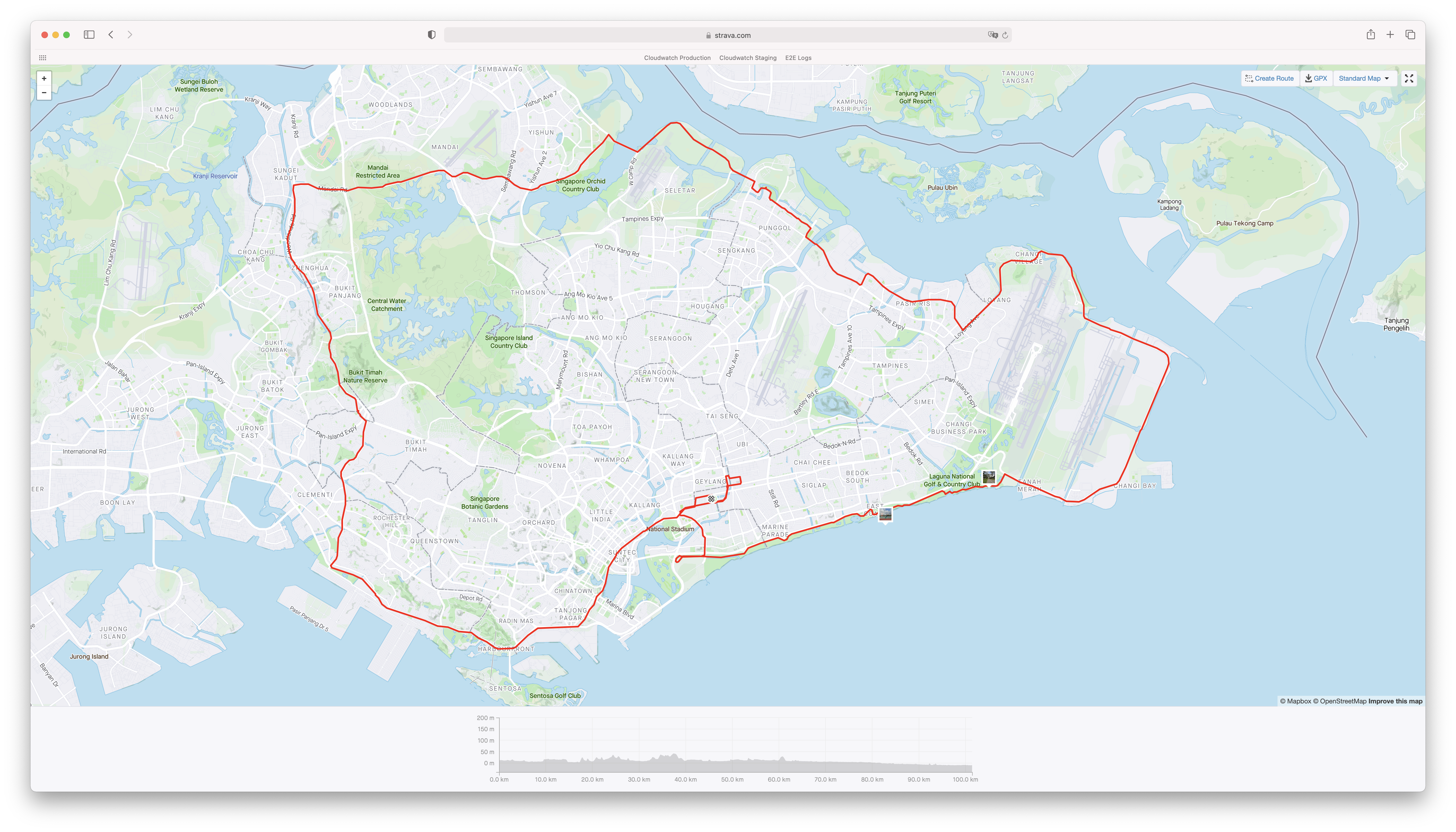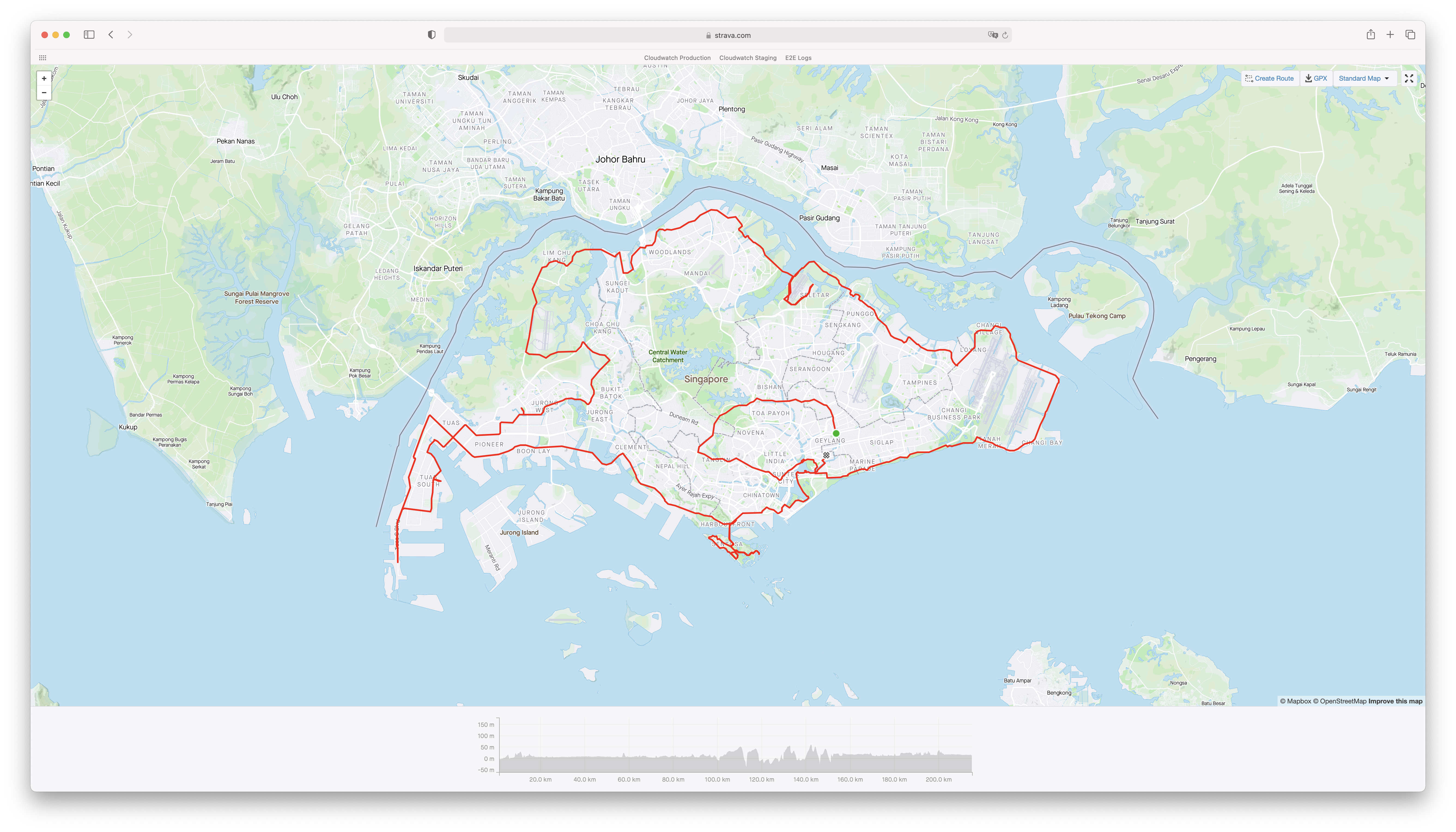 และระดับโหดสุดที่ก็ยังไม่เคยปั่นเพราะมันไกลมากคือวิ่งไป Tuas ด้วยแล้วปั่นไปจนสุด Tuas South Boulevard แล้วค่อยปั่นกลับมา Jalan Boon Lay แล้วค่อยปั่นขึ้นไป Lim Chu Kang เส้นนี้ถ้าปั่นจบคือได้ Century length พอดี 160 กิโลเมตร (100 ไมล์) เป็นเส้นที่ใช้พลังชีวิตเยอะสุดแล้วเพราะตอนไป Tuas ถนนไม่ดีเท่าไหร่ด้วย และช่วง Tuas คือไม่มีจุดแวะพักดีๆ เลย